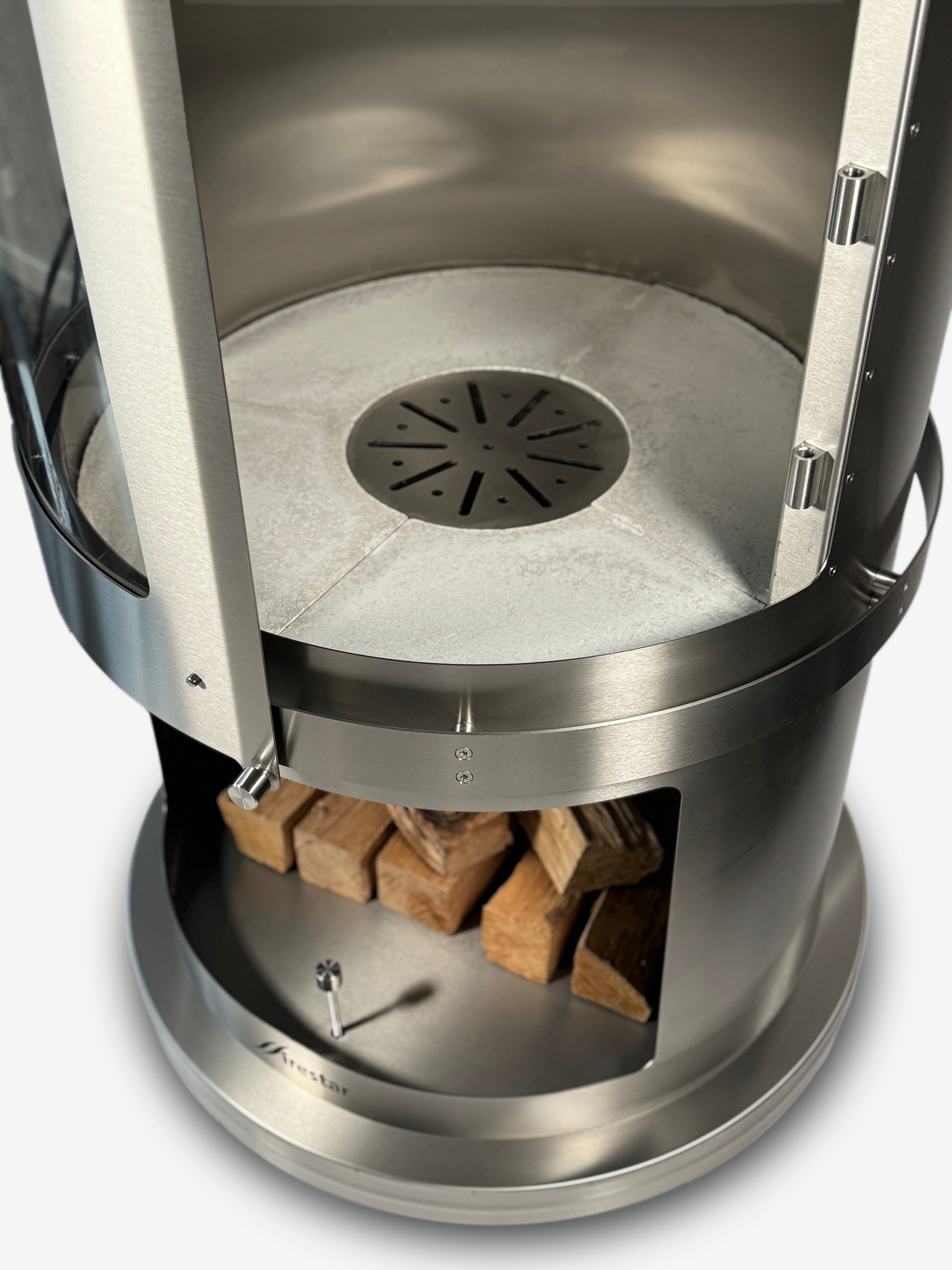 „Maximale Effizienz und echte Outdoor-Langlebigkeit – der firestar Brennraum“ Der doppelwandig isolierte Brennraum der firestar Gartenkamine sorgt für eine effiziente Wärmeverteilung bei gleichzeitig angenehmer Oberflächentemperatur. Durch den Einsatz von hochwertigem Edelstahl – neu: V4A im Brennraum – bleibt die äußere Hülle kühl, während im Inneren hohe Temperaturen für behagliche Abende oder perfektes Grillvergnügen sorgen. Die durchdachte Bauweise verhindert Verformungen durch Hitze (thermische Ausdehnung) und macht den Kamin besonders widerstandsfähig gegenüber Witterungseinflüssen – perfekt für den dauerhaften Einsatz im Freien, das ganze Jahr über. Der Boden des Brennraums besteht aus feuerfestem Spezialbeton, der Temperaturen bis zu 1.000 °C mühelos standhält. Im Vergleich zu Materialien wie Schamotte oder Vermiculite überzeugt dieser Beton durch besondere Langlebigkeit, hohe Hitzebeständigkeit sowie Widerstandsfähigkeit gegen Feuchtigkeit und Frost. Das Ergebnis: Dein Kamin bleibt auch bei extremen Wetterbedingungen formstabil und einsatzbereit – im Sommer wie im Winter. |