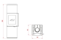 Der Ofen zeichnet sich durch eine senkrechte Feuertür mit Griffprofil und automatischem Schließsystem aus. Die Struktur besteht aus lackiertem Stahl, die Seitenwände und die Abdeckplatte sind aus Speckstein. |